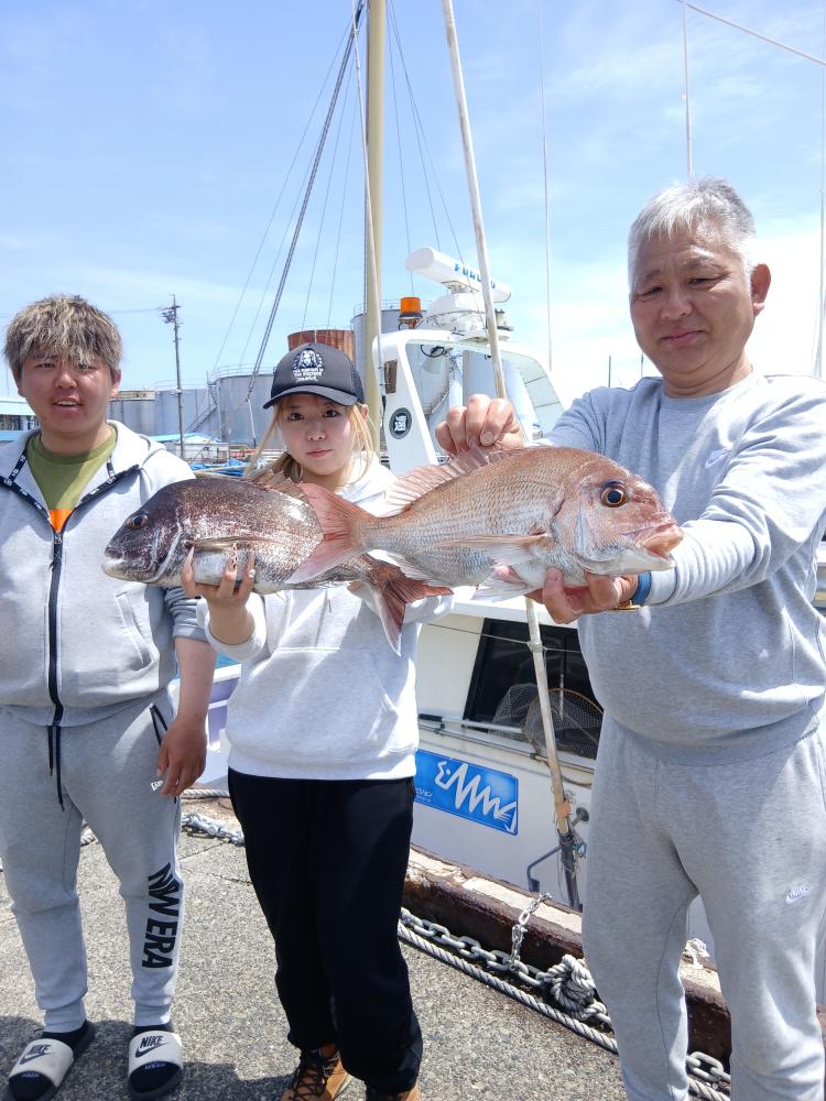 初心者のレディーも2kg程の真鯛をGET